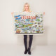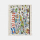 Bright colorful vintage illustrated postcard map of the State of Colorado repurposed on a small throw blanket.