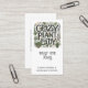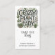 A gardener landscaper business card featuring a typography crazy plant lady expression illustrated with leaves and plants around the typography, for an individual unique gardener business card.