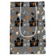 Illustrated Halloween Pattern with grey, black Medium Gift Bag