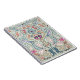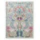 Fun, illustrated notebook with symmetrical design. Muted blue, green, pink and gray colors in a swirling, abstract of color. Design elements include ladybugs, flowers, vines, wings, and leaves. An interesting and unique notebook cover to use for note-taking in class, or junk journal writing.