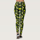 Pretty hand drawn all-over print leggings with summery yellow lemons, lemon slices and green leaves on black pattern