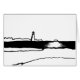 This blue design features a lighthouse beach landscape. The landscape includes a beach, lighthouse, and ocean sunrise. All colours in the design are black and white. This cute illustration is fun.
