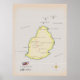 Illustrated map of Mauritius in a beautiful vintage or retro style.