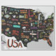 Illustrated map of the USA. Poster with states and Wrapping Paper