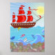 Illustrated Red Pirate Ship Poster