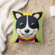 Illustrated Smiling Dog With Collar Cushion