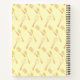 A recipe notebook with a smiling, cartoon, lemon meringue pie with lemon slices on a background of repeating cooking utensils. The cover show the words "Elizabeth's Recipes" and can be customised.