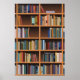 Illustrated design of a tall bookshelf with a variety of colourful books