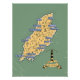 Illustrated Travel map of Isle Of Man in a beautiful vintage or retro style.