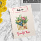 Watercolor illustration of summer coneflowers in a rustic envelope with "You Got This" quote in pink and framed area for name or text, decorate this quality 6.5" x 8.75" journal notebook. The background is a white linen colour and the back is white. Easily change the text and calligraphy name to make it yours using the Template provided. This notebook contains 80 pages, college lined in black. See "About This Product" for more information.