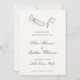 The save the date card features an off white background, offering a serene and classic canvas that enhances the minimalist design. The elegant charcoal grey font, inspired by vintage calligraphy, adds a touch of sophistication and warmth. This carefully selected typography complements the artistic elements, ensuring your wedding details are presented with style and clarity.