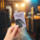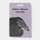 This name or identification badge is a pretty light purple with an illustration of the head and wing of a black crow. Customise your name and information with the templates.