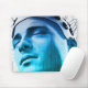 A conceptual illustration of a blue male head wearing a cap of electrodes with an overlay of a pattern of a circuit board. Copyright: MedicalRF.com