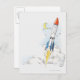 Illustration of a rocket taking off postcard