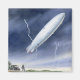 Illustration of US Navy airship being struck by lightning during storm as man looks up from ground next to car. Copyright: Peter Dennis