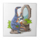 Illustration Of An Iguanodon Putting On Make-Up. Ceramic Tile