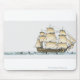 Illustration of late 18th century warship sailing in sea of sharks. Copyright: Rodney Shackell