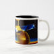 Illustration of satellites over Earth's horizon Two-Tone Coffee Mug