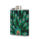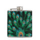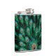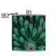 Illustration With Peacock Feathers on Black Hip Flask