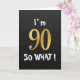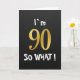 Celebrate a milestone 90th birthday with a touch of humour! This unique design features the bold statement 'I'm 90 SO WHAT!' in a striking gold and white font against a black background. Perfect for anyone turning ninety who embraces their age with humour. It's an ideal way to bring a smile and a laugh to birthday boy or girl. A fantastic gift for grandmas, grandpas, friends, or family who love a good joke and a stylish design.