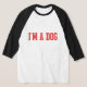3/4 raglan tee with slogan "I'm a dog." Whether a fan of the Bulldogs, a fan of the YouTube video "I'm a dog", or if you love dogs, you'll look awesome in this shirt. "I'm a doooooooooog!"