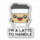 I'm A Latte To Handle Funny Sassy Coffee Pun features a cute sarry cup of coffee declaring she's a lot to handle! Perfect pun gift for family and friends who love cute sassy coffee puns.