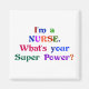 "I'm a Nurse. What's Your Super Power?" text design, fridge magnet.
