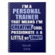 I'm a personal trainer that means I'm creative, cool, passionate & a little bit crazy. Expression in blue and white uppercase font lettering.