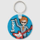 Rockstar keyring boy on Blue. Add your name keychain this example reads Robert or add your own name (4-6 letters max). Exclusive design by Sarah Trett.