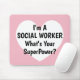 I'm a social worker whats your superpower mousepad. Custom mouse pad with love heart symbol. Personalizable quote and colours. Funny gift idea for friend, co worker, colleague, employee, caretaker, caregiver, son, daughter, care giver, nurse, mum, super hero, husband, wife, coworker, student etc. Custom computer accessories for work palce. Job related / office humour presents.