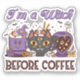 Cast a spell on your morning with this enchanting sticker featuring the phrase “I'm A Witch Before Coffee.” Adorned with cute Halloween-themed coffee brews, like jack-o’-lantern cups, ghost lattes, and witchy mugs, this whimsical design is perfect for anyone whose magic doesn’t kick in until after their first sip. A fun and festive tribute to spooky season and caffeine cravings!