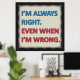 Poster featuring design with the text "I'm Always Right. Even When I'm Wrong" in blue and red.