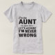 I'm an Aunt, Assume I'm Never Wrong t-shirt design for aunts who are positive that they're always right.