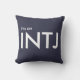 A dark indigo-blue throw pillow with the customisable words "I'm an INTJ". INTJ is one of the 16 personality types in the Myers–Briggs Type Indicator (MBTI), which is one of the most widely used introspective self-report personality test in the world based on Carl Jung and Briggs Myers type theory.