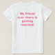We are wearing these matching shirts at our co-ed bach party as we share our last night together as single folks with our friends. The shirts are high quality and it's nice to have a female version of the male shirt so that it fits my body perfectly.