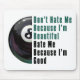 Eight Ball Don’t Hate Me Because I'm Beautiful, Hate Me Because I'm Good tshirts, gifts, and accessories created by ITD Sports Centre feature our original artwork of half a black and white 8 ball on the left side with the words in pool table felt green and black on the right, Don’t Hate Me Because I’m Beautiful, Hate Me Because I’m Good. Our fun sports gifts and accessories are great for 8-ball lovers, pool players, pool sharks, and sports lovers of all ages. It’s all fun and games at Imagine That! Design Sport Centre. Enjoy shopping with us!