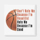 Basketball Art Don’t Hate Me Because I’m Beautiful t-shirts, gifts, and accessories created by ITD Sports Centre features our original artwork of half a basketball on the left side with the words in orange and black on the right, Don’t Hate Me Because I’m Beautiful, Hate Me Because I’m Good. Our fun and competitive sporting goods are great gifts for basketball lovers, basketball players, basketball stars, basketball coaches, and sports lovers of all ages. It’s all fun and games at Imagine That Design Sports Centre.
