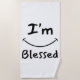 This beach towel showcases the words "I'm Blessed" in a unique mansalva print font with black letters plus smile icon in the centre with in bible faith based saying theme. The front of this towel is a polyester blend, the back is 100% cotton with vibrant sublimation printing that is designed to last. Enjoy this towel for your next picnic, beach getaway or any outdoor activity you may attend all towels are machine washable with recommended low speed tumble dry.