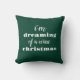 I'm Dreaming of a Wine Christmas Modern Throw Pillow. The design features a funny holiday quote on green background. Perfect for Christmas decor.