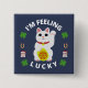 A fun design inspired by good luck and good fortune. It features a maneki neko Cat, a good luck symbol, the lucky seven, horse shoes and four leaf clovers. All these symbolsand objects are associate, with being lucky. It also has the words 'I'm feeling lucky' in the design.