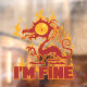 Vector cartoon illustration of a crispy, burned dragon engulfed in flames with I'm Fine text. Tags: black, burn, cartoon, crispy, dragon, fire, flame, hot, monster, red, animal, reptile, lizard, mess, messy, disaster, chaos, cute, burning, ablaze, blaze, scorch, fine, okay, OK, engulfed