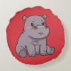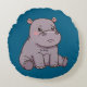 "I'm fussy." Cartoon, Cute Pouting Hippo Round Cushion