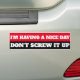 I'M HAVING A NICE DAY, DON"T SCREW IT UP BUMPER STICKER
