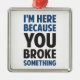 Great for tech support specialists and repairmen and women of all kinds to remind everyone exactly why they have shown up. It's because you broke something.