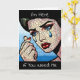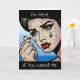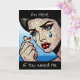 Comic book style pop art woman with tears in her eyes, red lipstick fractured ai art. Friendship card for someone going through a hard time.