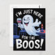 Halloween greeting card featuring a ghost with a glass of wine, smiling mischievously.