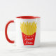 Express your love for fries with the I'm Just Here For The French Fries Mug designed by Enchantfancy Design Company. This funny design features a fast-food style fry container filled with french fries.