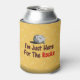 This can holder features a cartoon drawing of a simple rock and says 'I'm Just Here For The Rocks." The true motivation of a geologist! On the back is a spot for your name and short message in white lettering. The background is a bunch of tiny geology rock hammers!