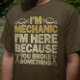 Vintage I'm Mechanic I'm Here Because You Broke Something. Funny sayings for cool men in your life who are mechanics, handymen, engineers, or skilled fixers.