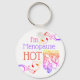 I'm that hot! And menopause is pretty steaming! Show everyone your cougar side with this keychain. It features an Alphonse Mucha girl primping, framed with some pretty victorian scroll, and says "I'm menopause hot". In sassy colours of bright pink, purple, red and yellow on a white background.